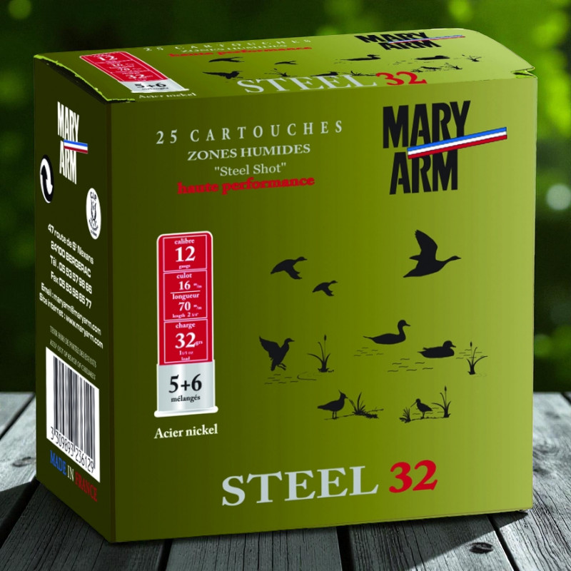 Built with non-toxic, high-quality steel and precise French manufacturing, Mary Arm Mixed Steel Loads meet all lead-free regulations while maintaining the knockdown power and consistency hunters depend on.
